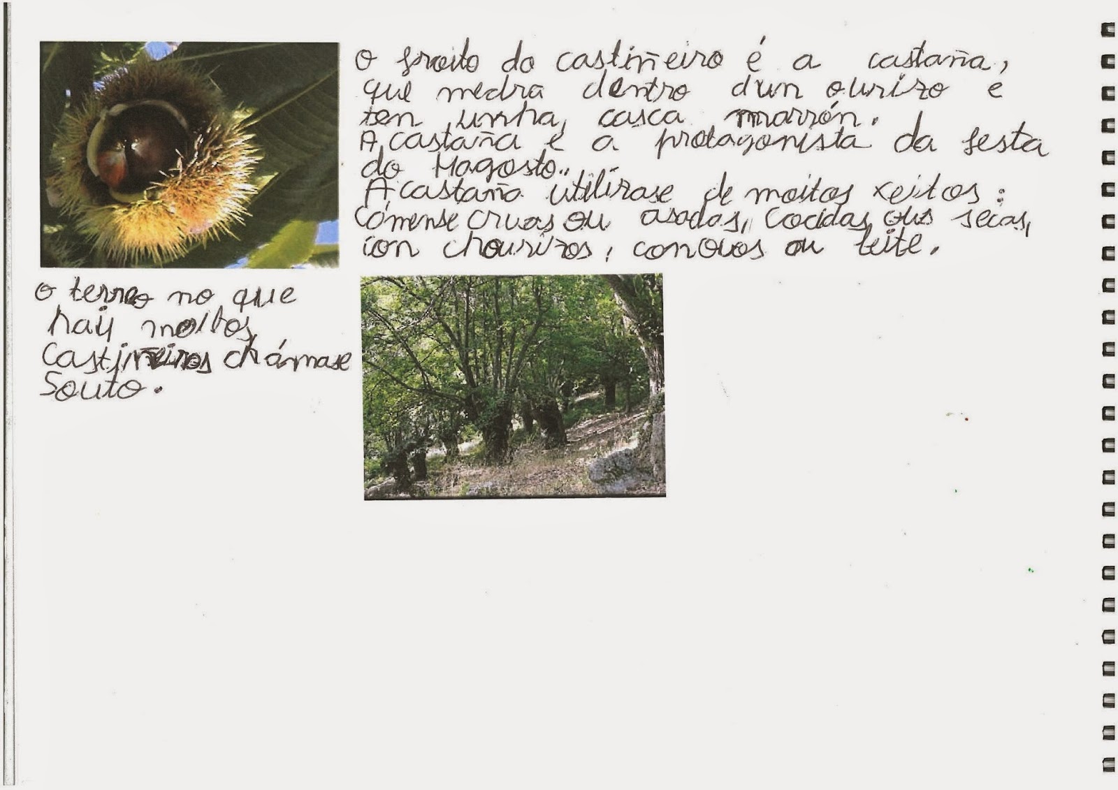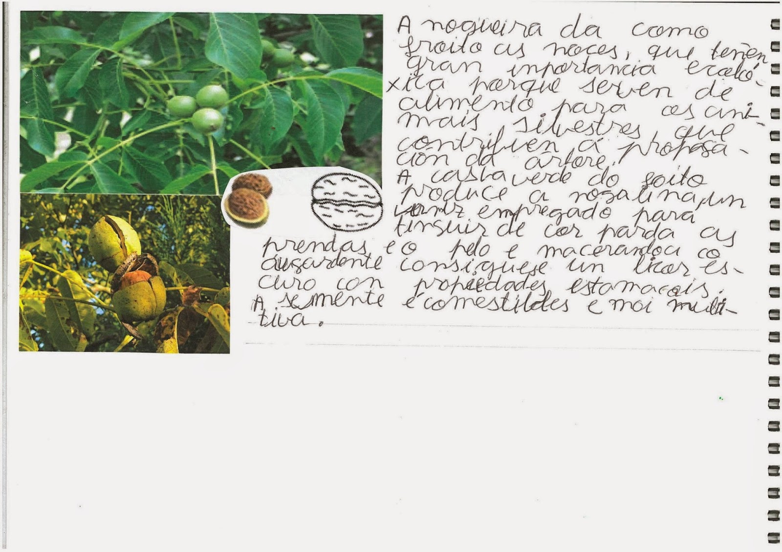 Traballamos cos froitos típicos do outono, algúns dos cales temos no patio do noso colexio, no que puidemos recoller algúns deles, como castañas e noces...ademáis das follas de cada árbore, para posteriormente levar a cabo un traballo de aula.